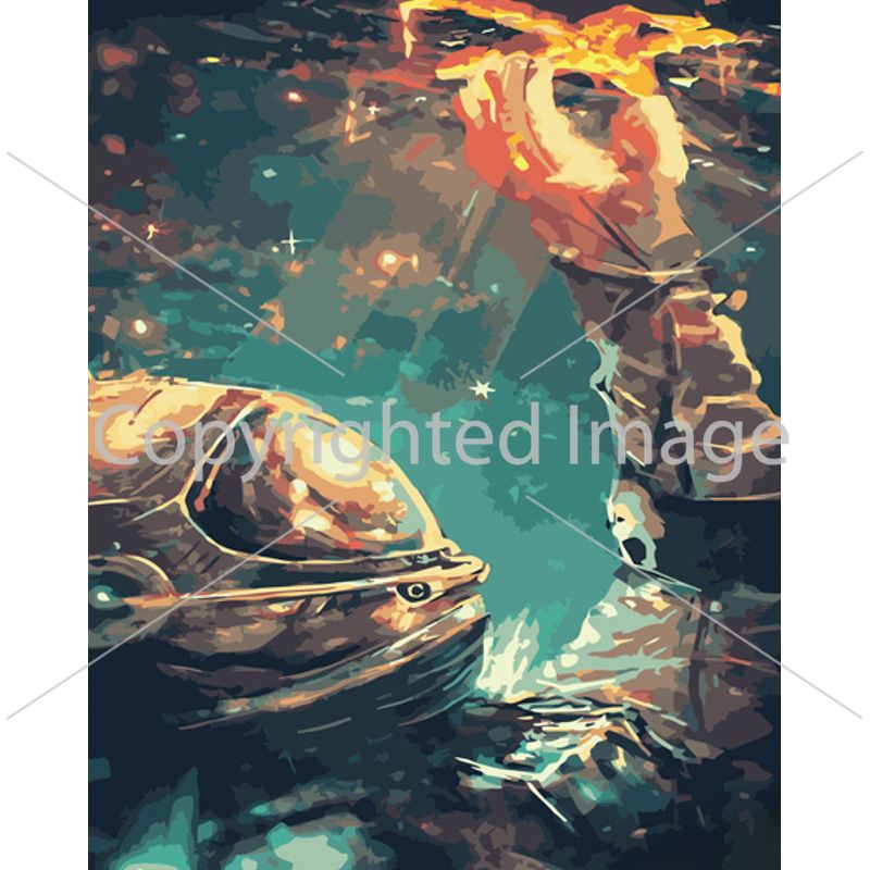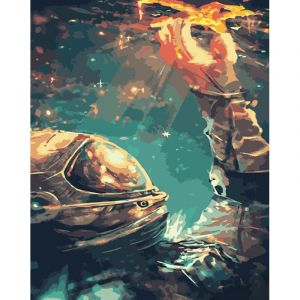 Картина за номерами Strateg ПРЕМІУМ Дотик космонавта з лаком та з рівнем розміром 40х50 см (GS1486)