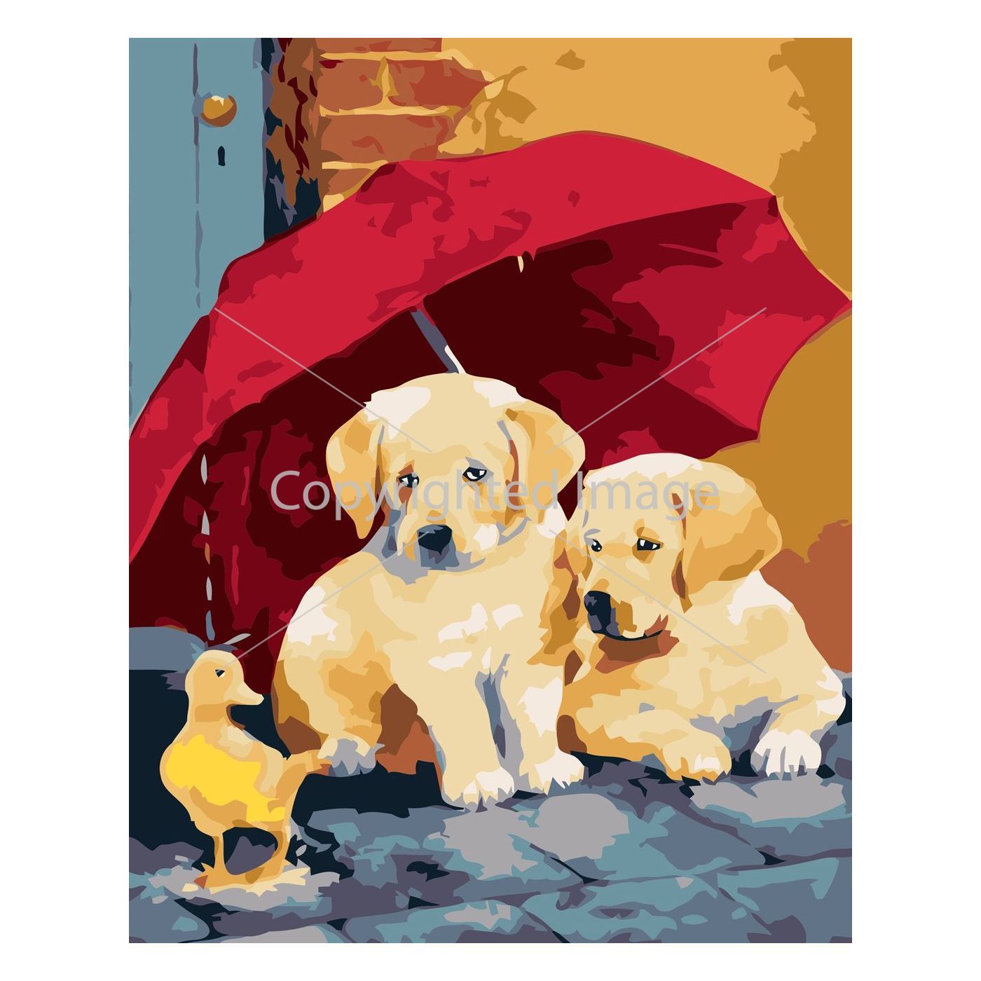 Картина за номерами Strateg ПРЕМІУМ Друзі під парасолькою з лаком розміром 30х40 см SV-0042