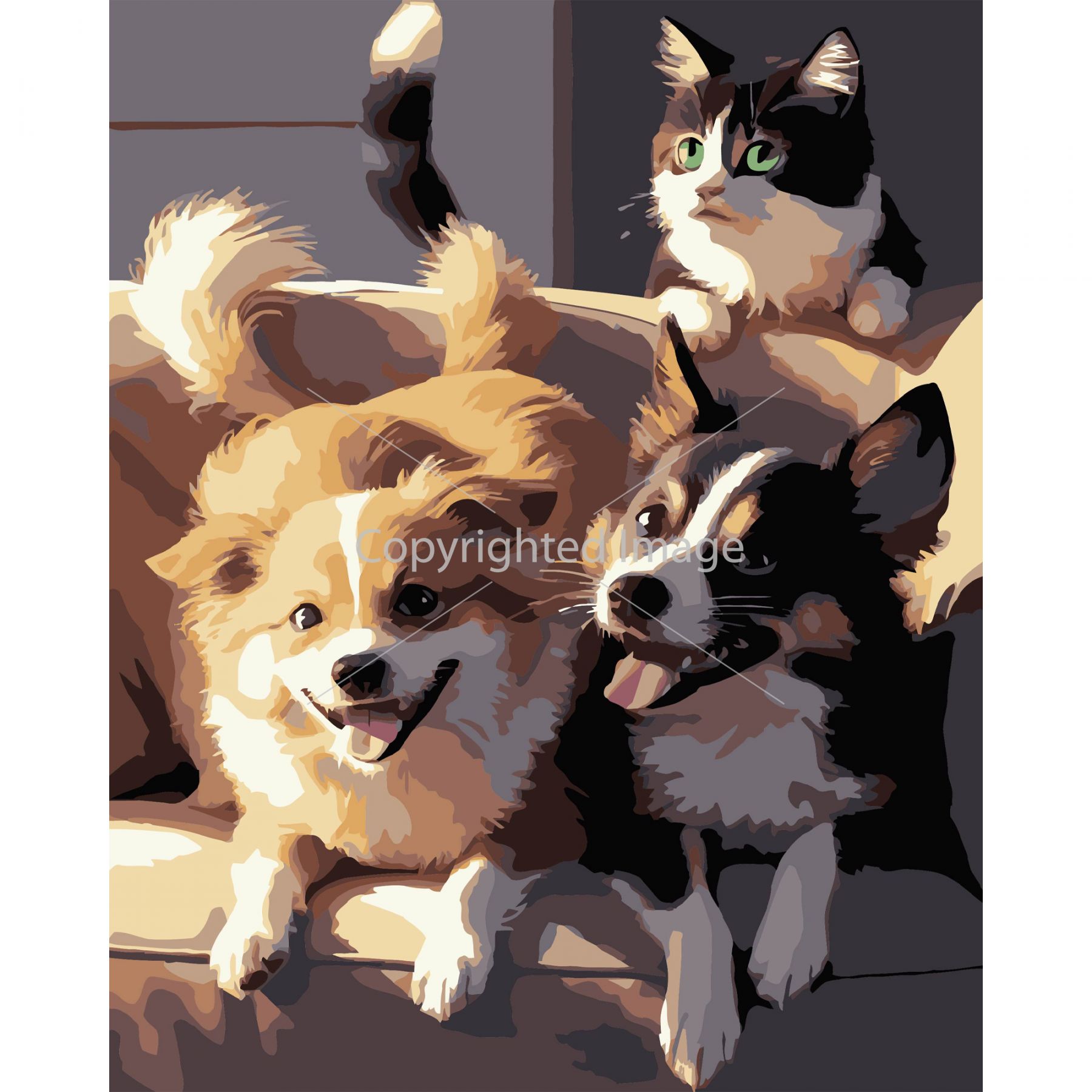 Картина за номерами Strateg ПРЕМІУМ Дві собаки і кіт на чорному фоні розміром 40х50 см (AH1190-17)Картини за номерами від українського виробника Strateg поєднують творчість з грою. Вони розвивають фантазію, покращують пам'ять і дрібну моторику. А процес малювання знижує тривогу і знімає стрес.