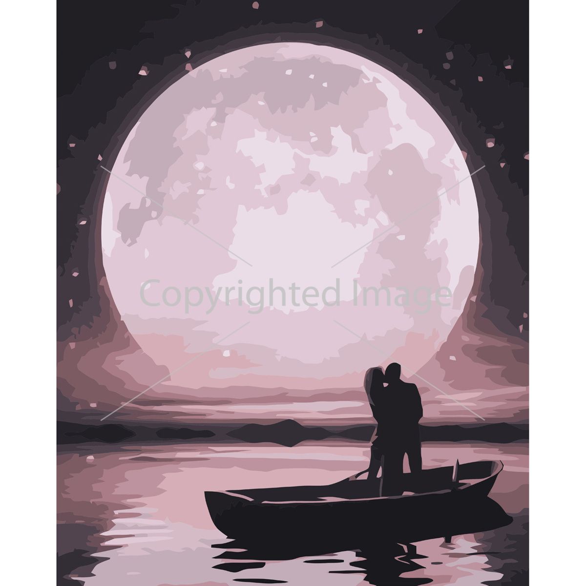 Картина за номерами Strateg ПРЕМІУМ Двоє у місячному сяйві з лаком розміром 40х50 см VA-3643