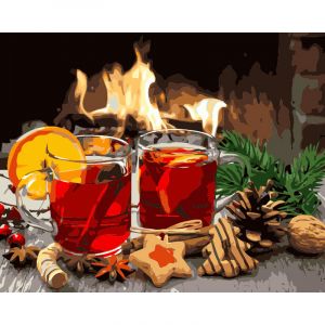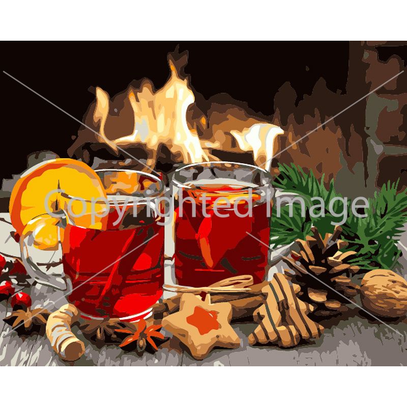 Картина за номерами Strateg ПРЕМІУМ Глінтвейн з лаком та з рівнем розміром 40х50 см (GS1567)
