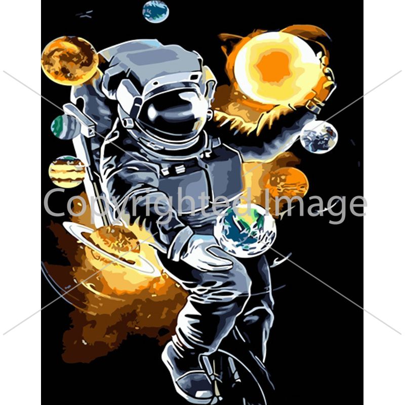 Картина за номерами Strateg ПРЕМІУМ Гра в космосі з лаком та з рівнем розміром 40х50 см (GS1528)