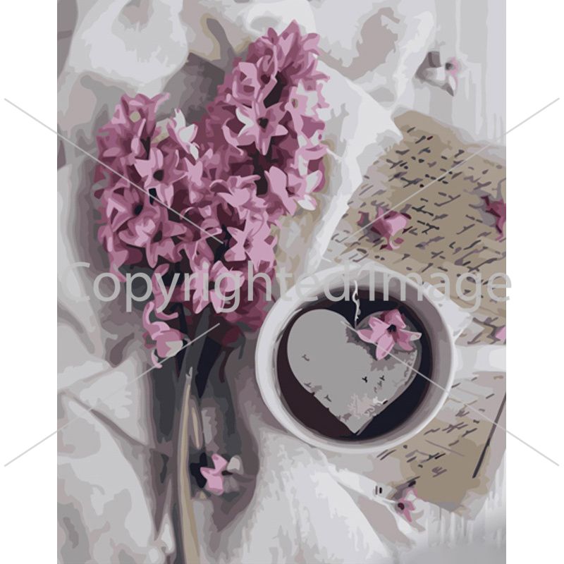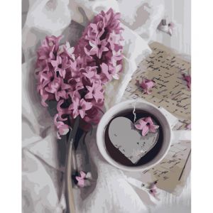 Картина за номерами Strateg ПРЕМІУМ Кава з гіацинтом з лаком та з рівнем розміром 40х50 см (GS1391)