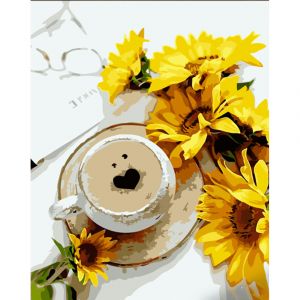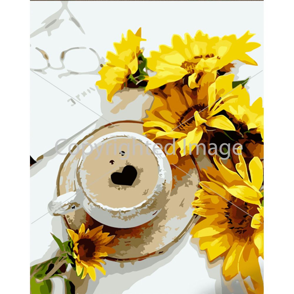 Картина за номерами Strateg ПРЕМІУМ Кава з соншниками з лаком розміром 30х40 см (SS6755)