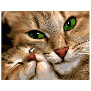 Картина за номерами Strateg ПРЕМІУМ Кішка з кошеням з лаком розміром 40х50 см VA-0915