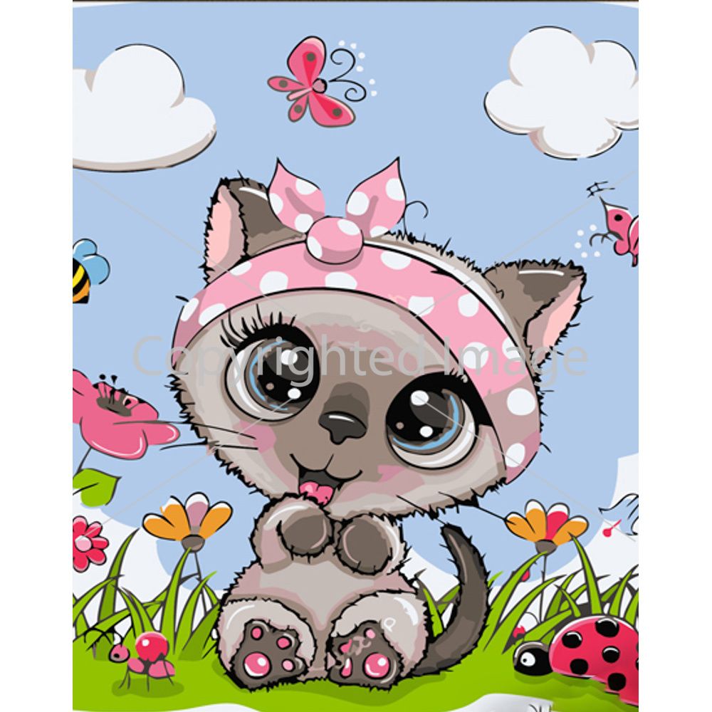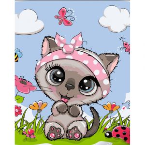 Картина за номерами Strateg ПРЕМІУМ Кішка з рожевою пов'язкою з лаком розміром 30х40 см (SS6714)