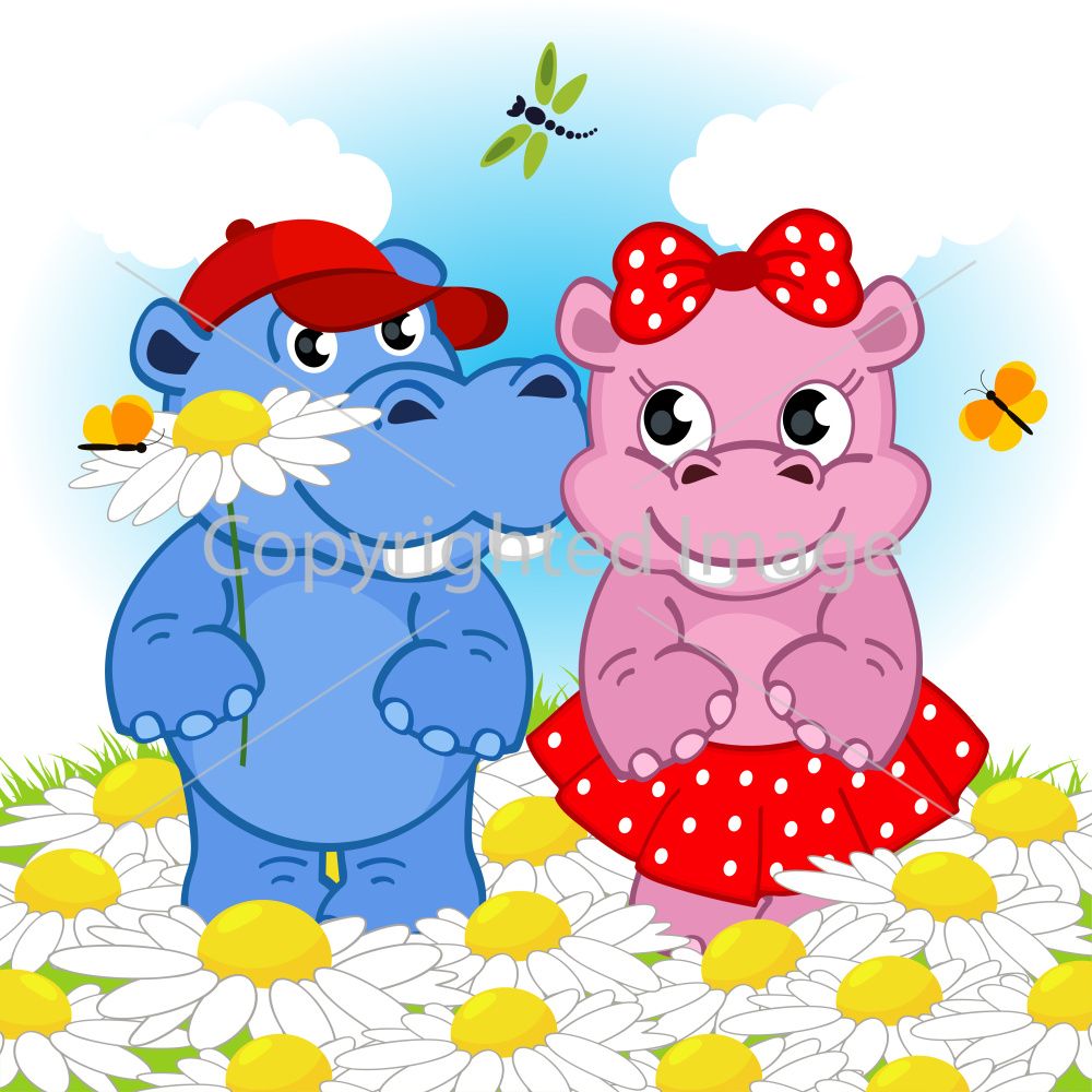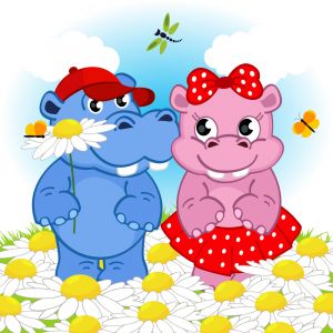 Картина за номерами Strateg ПРЕМІУМ Кохання бегемотів з лаком та з рівнем розміром 30х30 см (ES177)