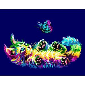 Картина за номерами Strateg ПРЕМІУМ Кошеня та метелик з лаком розміром 40х50 см VA-3659