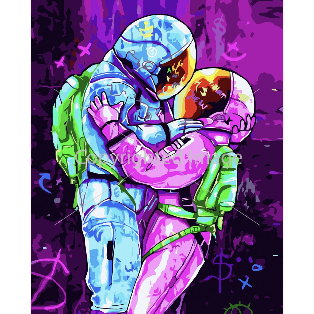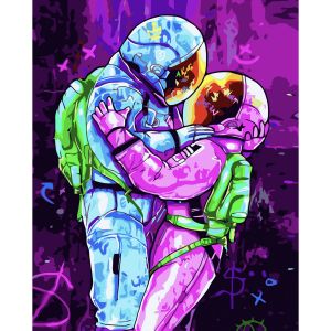 Картина за номерами Strateg ПРЕМІУМ Космічне кохання з лаком розміром 40х50 см VA-3722