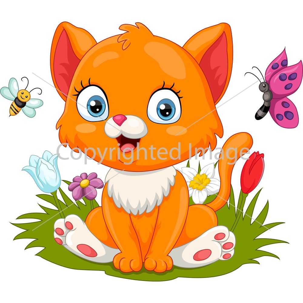 Картина за номерами Strateg ПРЕМІУМ Котеня на галявині з лаком та з рівнем розміром 30х30 см (ES216)