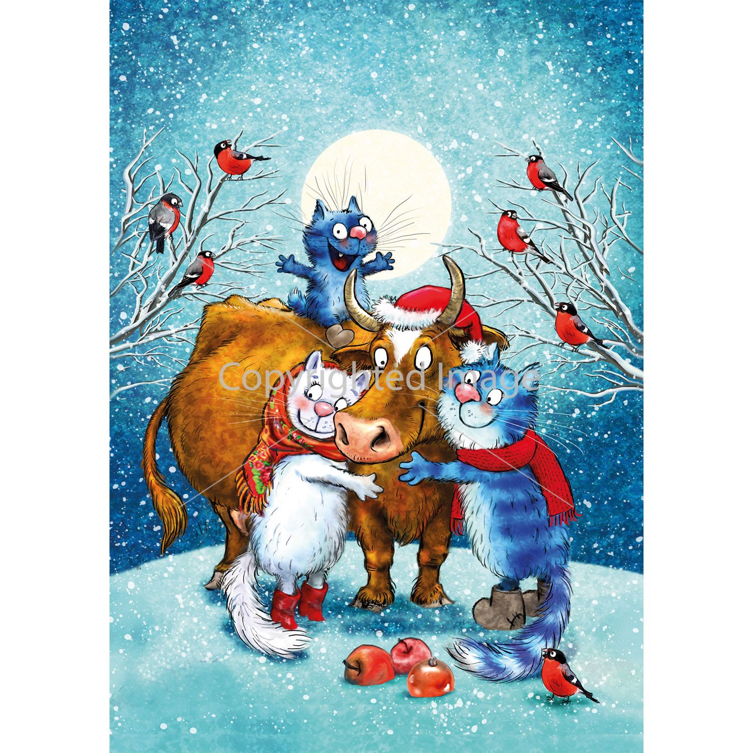 Картина за номерами Strateg ПРЕМІУМ Коти під луною з лаком розміром 30х40 см SS-6387