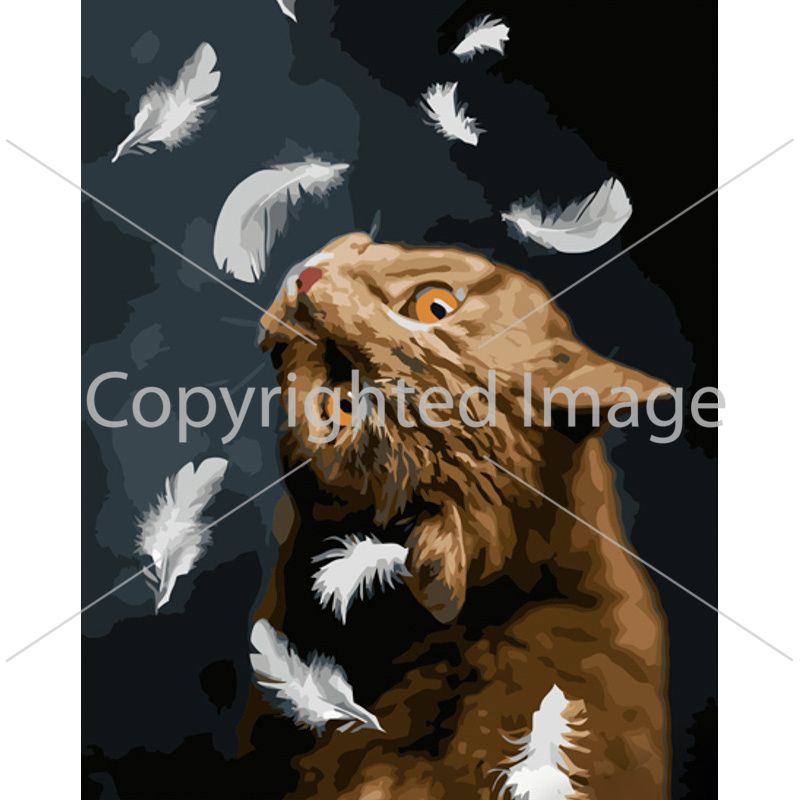 Картина за номерами Strateg ПРЕМІУМ Котик та пір'їни з лаком розміром 40х50 см (GS1219)