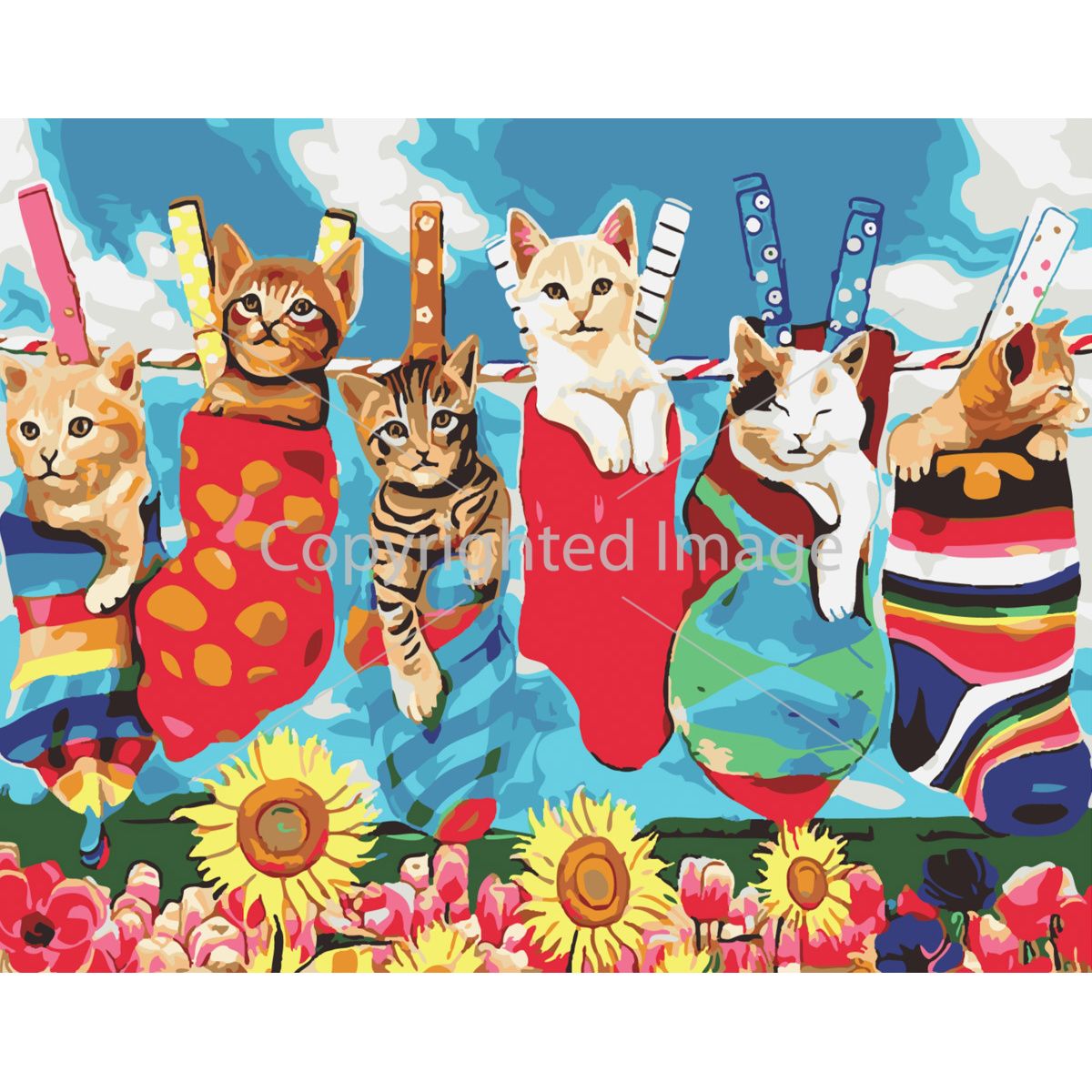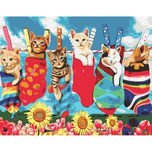 Картина за номерами Strateg ПРЕМІУМ Котики в шкарпетках з лаком розміром 30х40 см SS-6446