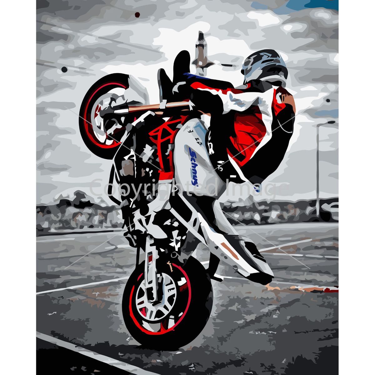 Картина за номерами Strateg ПРЕМІУМ Крутий байкер з лаком розміром 40х50 см VA-3588