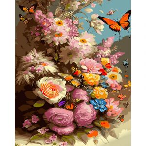Картина за номерами Strateg ПРЕМІУМ Кружляючі метелики з лаком та з рівнем розміром 40х50 см (GS1344)