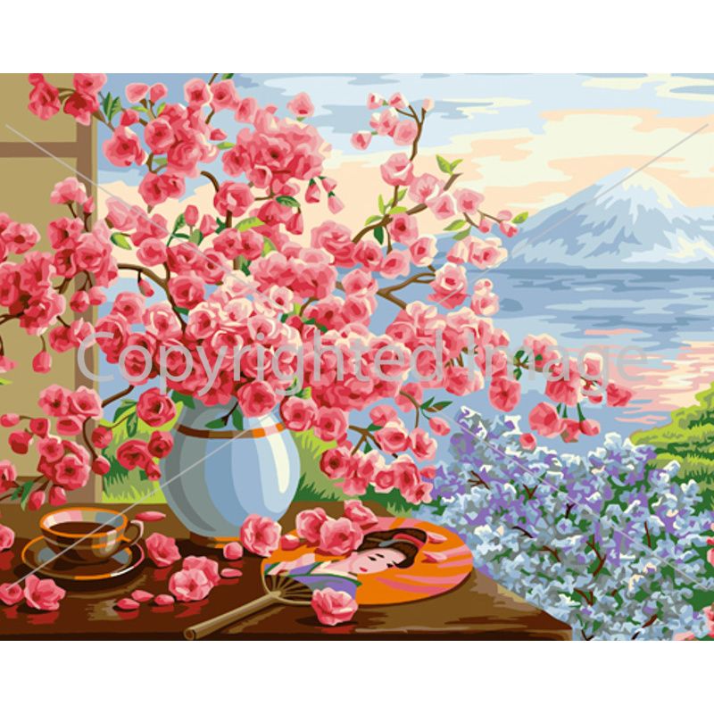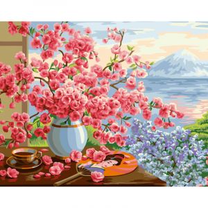 Картина за номерами Strateg ПРЕМІУМ Квіти на підвіконні з лаком та з рівнем розміром 40х50 см (GS1515)