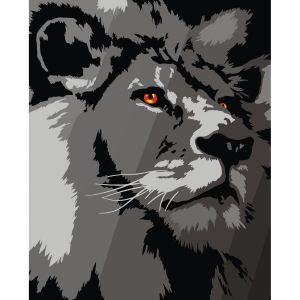 Картина за номерами Strateg ПРЕМІУМ Лев Ч/Б з лаком розміром 40х50 см VA-3644