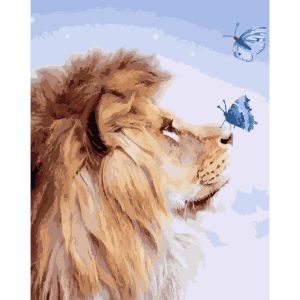 Картина за номерами Strateg ПРЕМІУМ Лев та метелики з лаком розміром 40х50 см (SY6773)