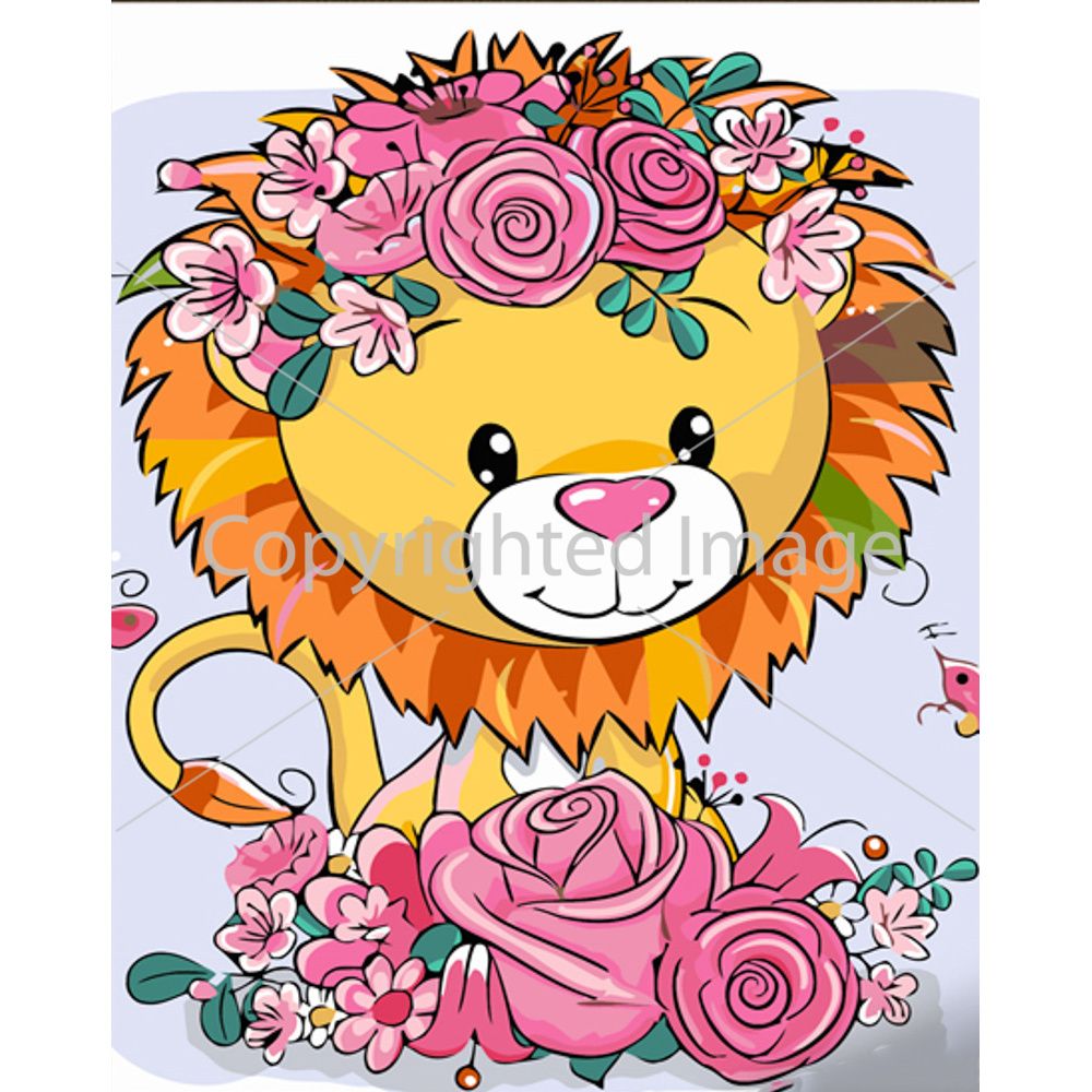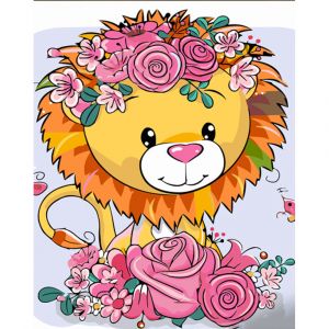 Картина за номерами Strateg ПРЕМІУМ Лев у квіточках з лаком розміром 30х40 см (SS6717)