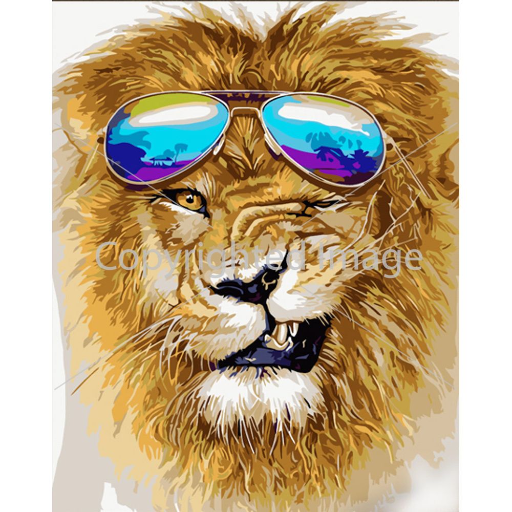 Картина за номерами Strateg ПРЕМІУМ Лев в окулярах з лаком розміром 30х40 см (SS6798)