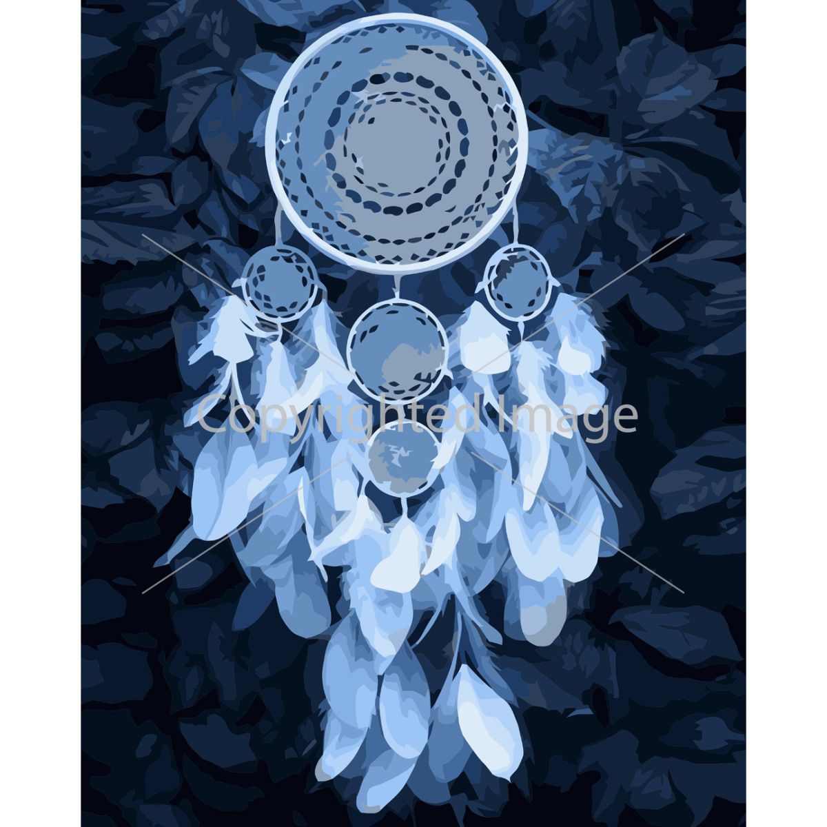 Картина за номерами Strateg ПРЕМІУМ Ловець снів з пір'їн з лаком розміром 40х50 см VA-3707