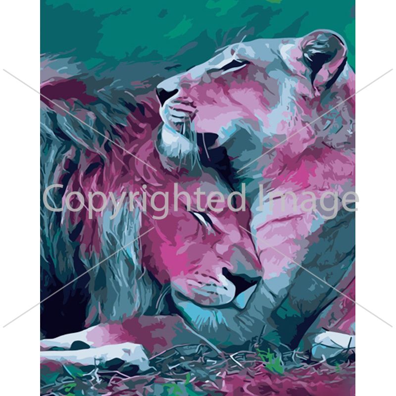 Картина за номерами Strateg ПРЕМІУМ Любов левів з лаком та з рівнем розміром 40х50 см (GS1460)