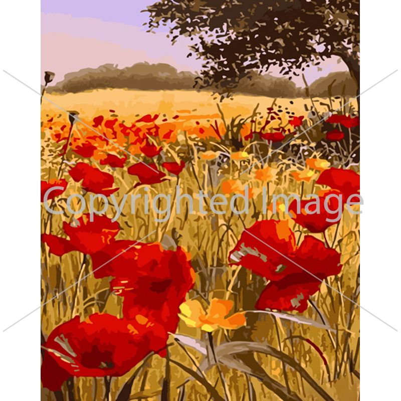 Картина за номерами Strateg ПРЕМІУМ Макове поле з лаком та з рівнем розміром 40х50 см (GS1341)