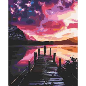 Картина за номерами Strateg ПРЕМІУМ Міст до західу сонця з лаком розміром 40х50 см SY6238