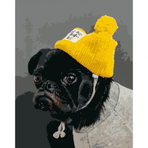 Картина за номерами Strateg ПРЕМІУМ Мопс у шапочці розміром 40х50 см (DY065)