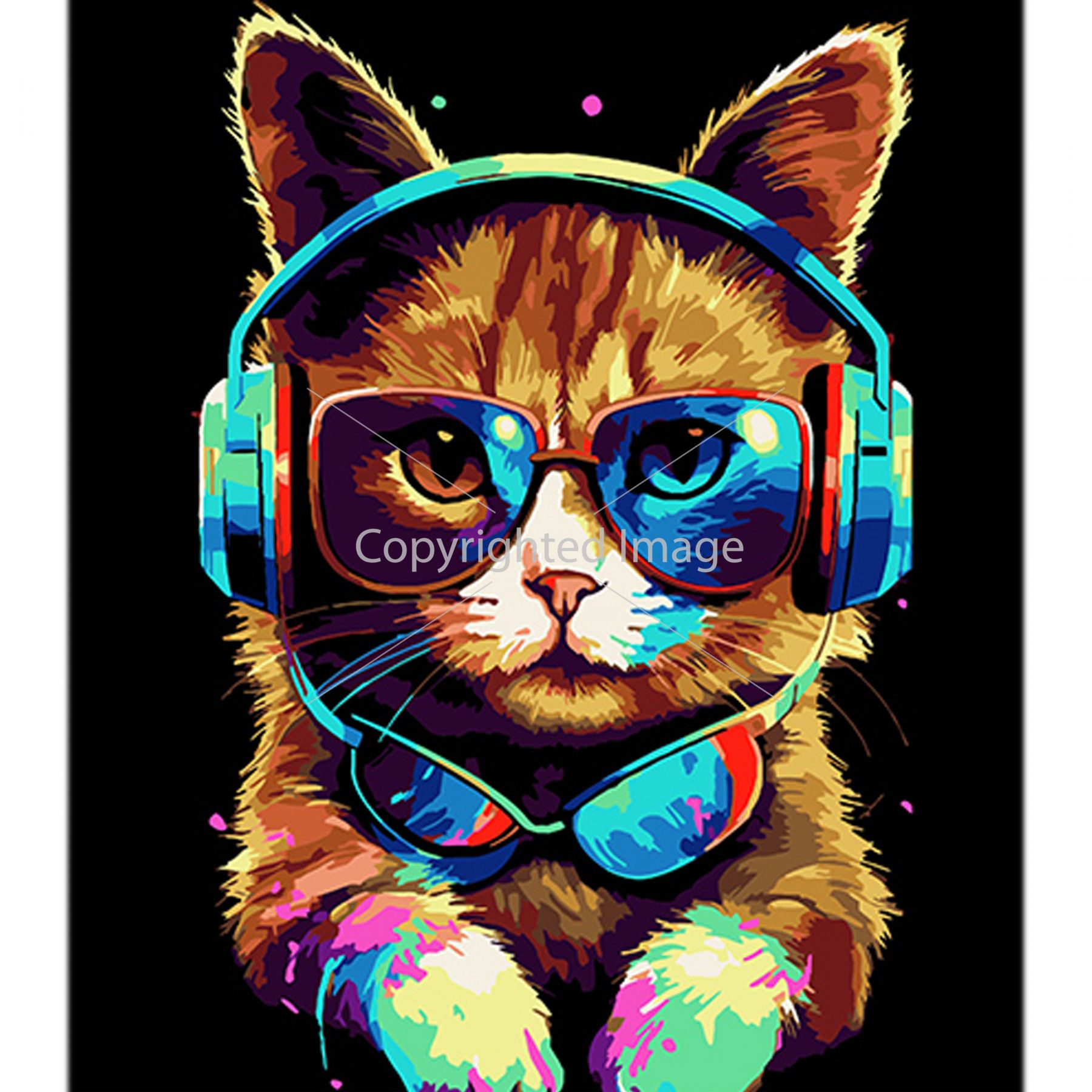 Картина за номерами Strateg ПРЕМІУМ Музична вечірка з котом на чорному фоні розміром 40х50 см (AH1138)