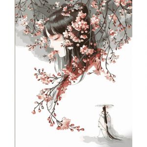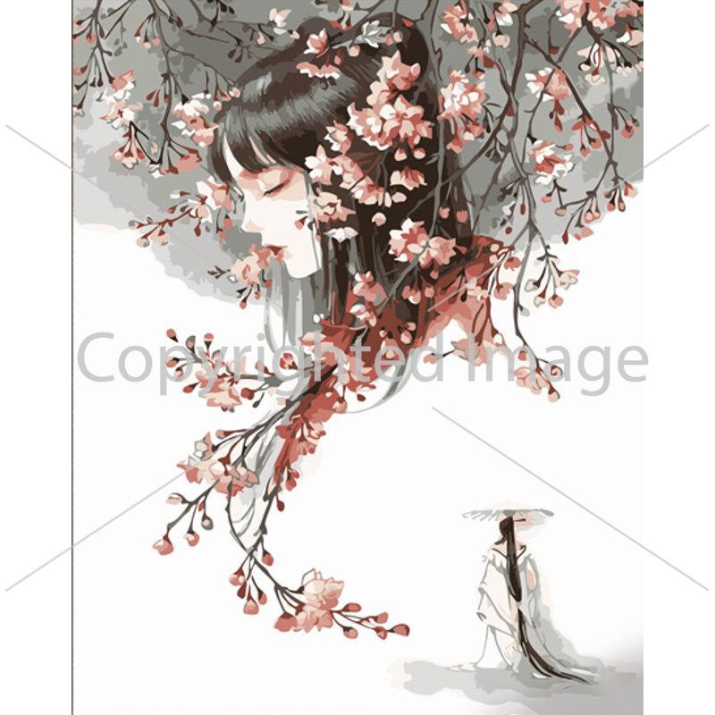 Картина за номерами Strateg ПРЕМІУМ Ніжна азіатка з лаком та з рівнем розміром 40х50 см (DY408)