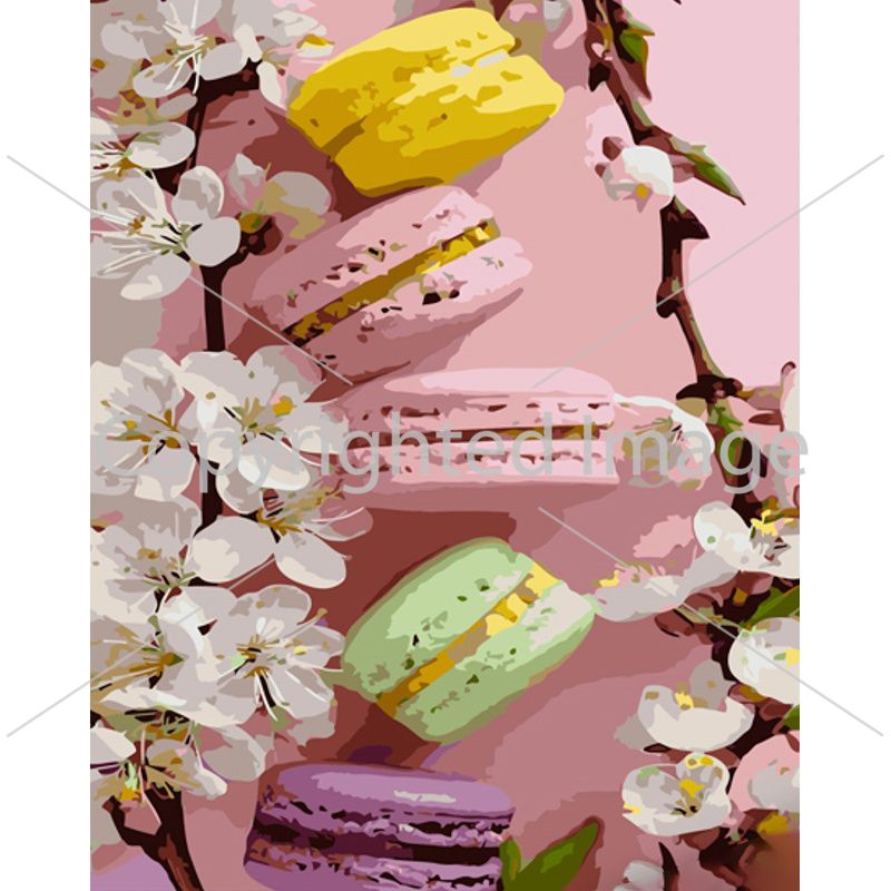 Картина за номерами Strateg ПРЕМІУМ Ніжні макаруни з лаком та з рівнем розміром 40х50 см (GS1374)