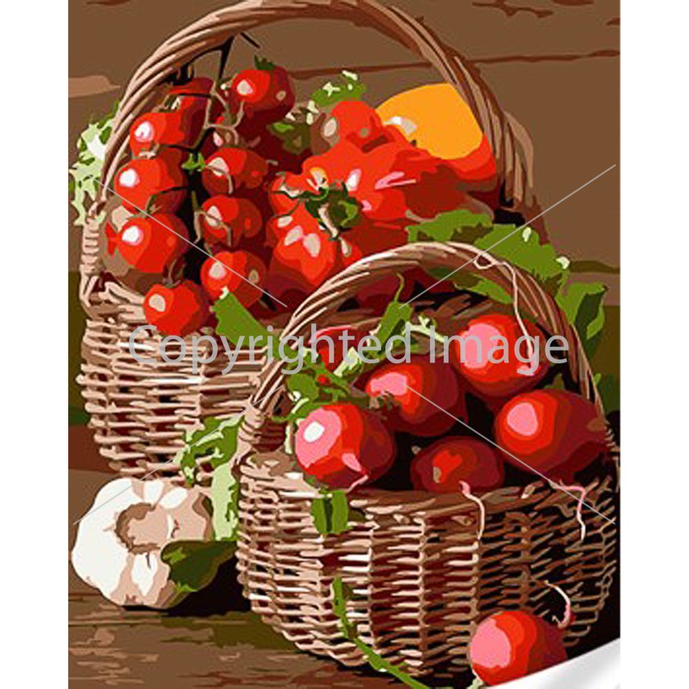Картина за номерами Strateg ПРЕМІУМ Овочевий натюрморт з лаком та з рівнем розміром 30х40 см (SS1025)