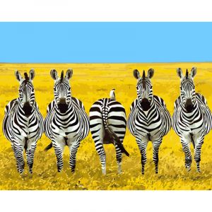 Картина за номерами Strateg ПРЕМІУМ П'ятірка зебр з лаком та з рівнем розміром 40х50 см (GS1521)