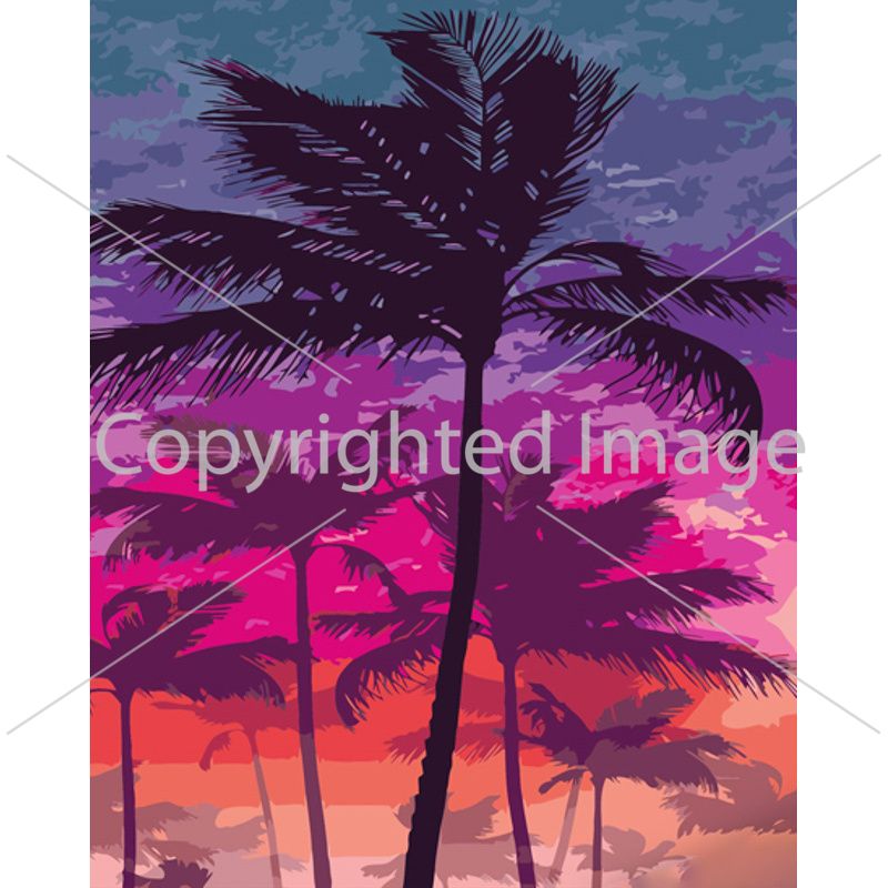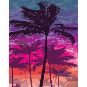 Картина за номерами Strateg ПРЕМІУМ Пальми на заході сонця з лаком та з рівнем розміром 40х50 см (GS1539)