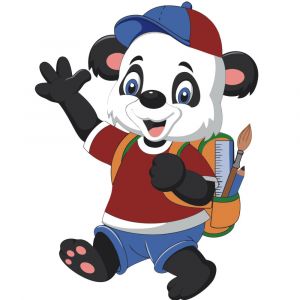 Картина за номерами Strateg ПРЕМІУМ Пандочка з рюкзачком з лаком30х30 см ES092