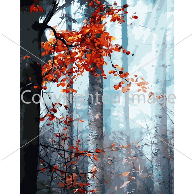 Картина за номерами Strateg ПРЕМІУМ Помаранчевий ліс з лаком та з рівнем розміром 40х50 см (GS1346)