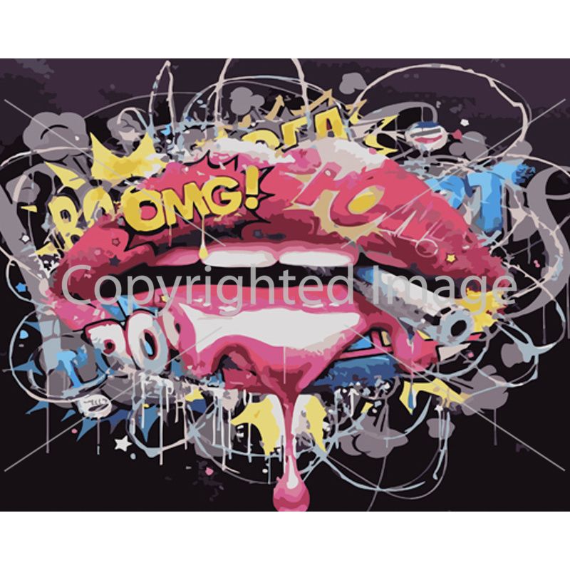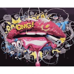 Картина за номерами Strateg ПРЕМІУМ Поп-арт губи з лаком та з рівнем розміром 40х50 см (GS1532)