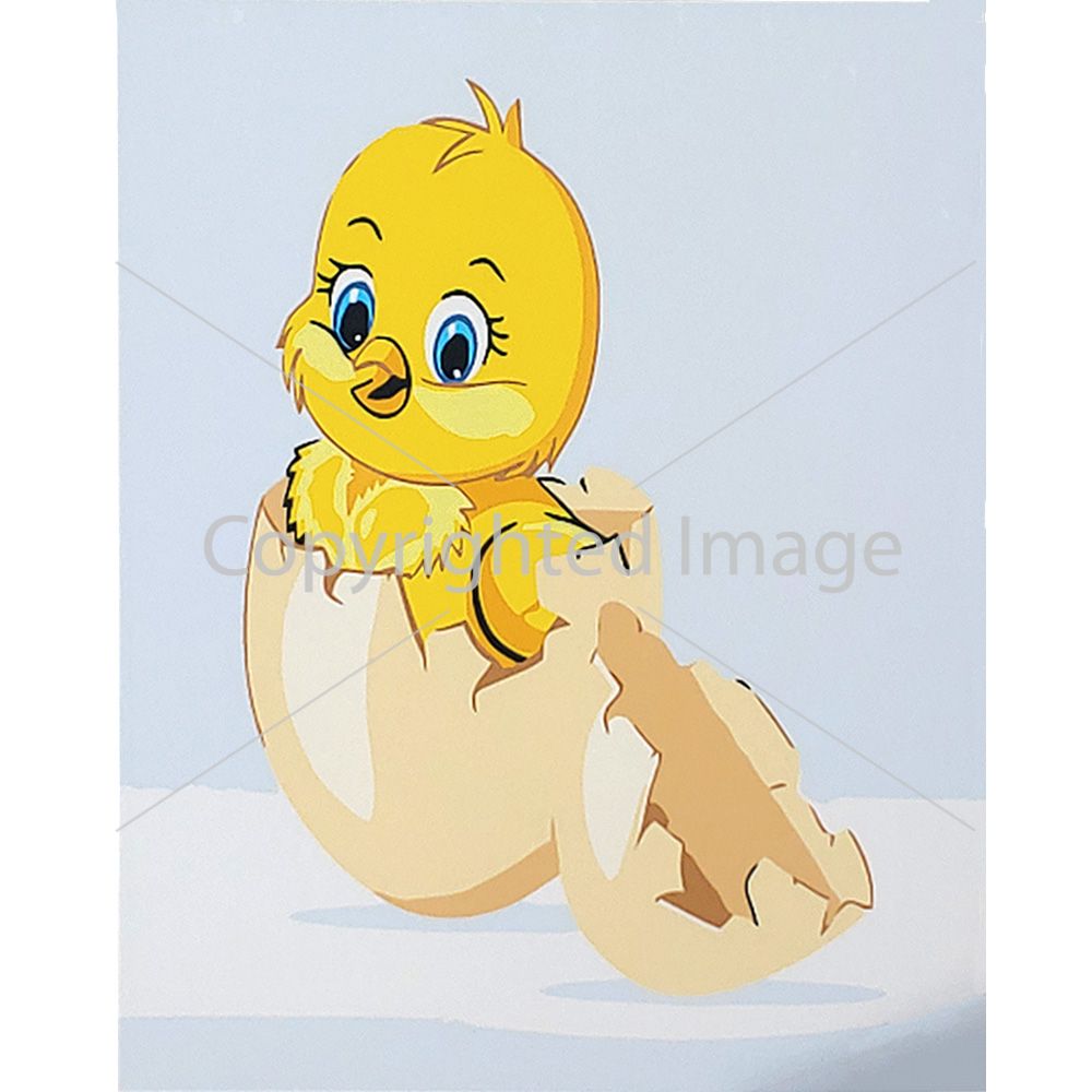 Картина за номерами Strateg ПРЕМІУМ Пташеня в шкаралупці з лаком та з рівнем розміром 30х30 см (ES200)