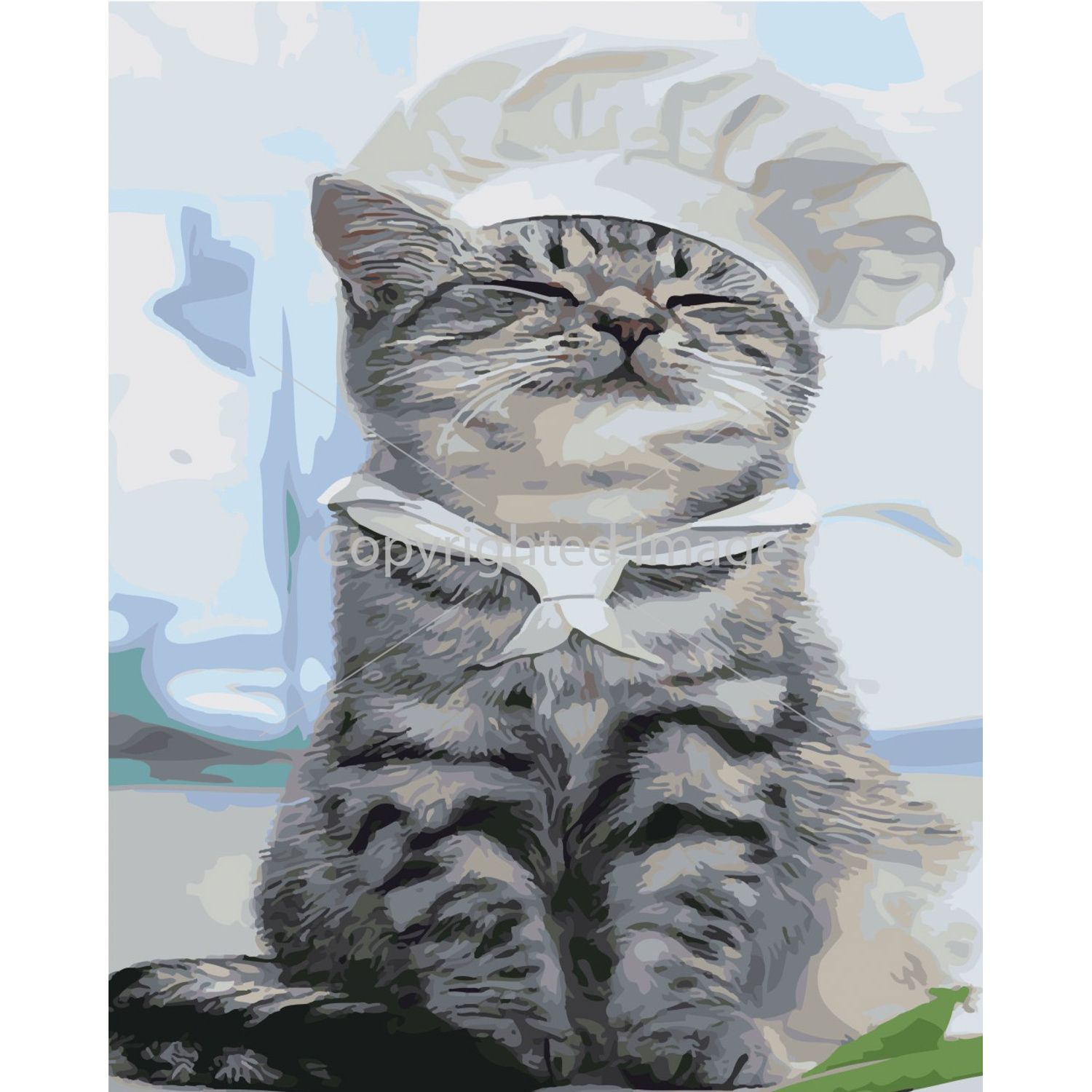 Картина за номерами Strateg ПРЕМІУМ Пухнастий шеф з лаком розміром 40х50 см SY6500