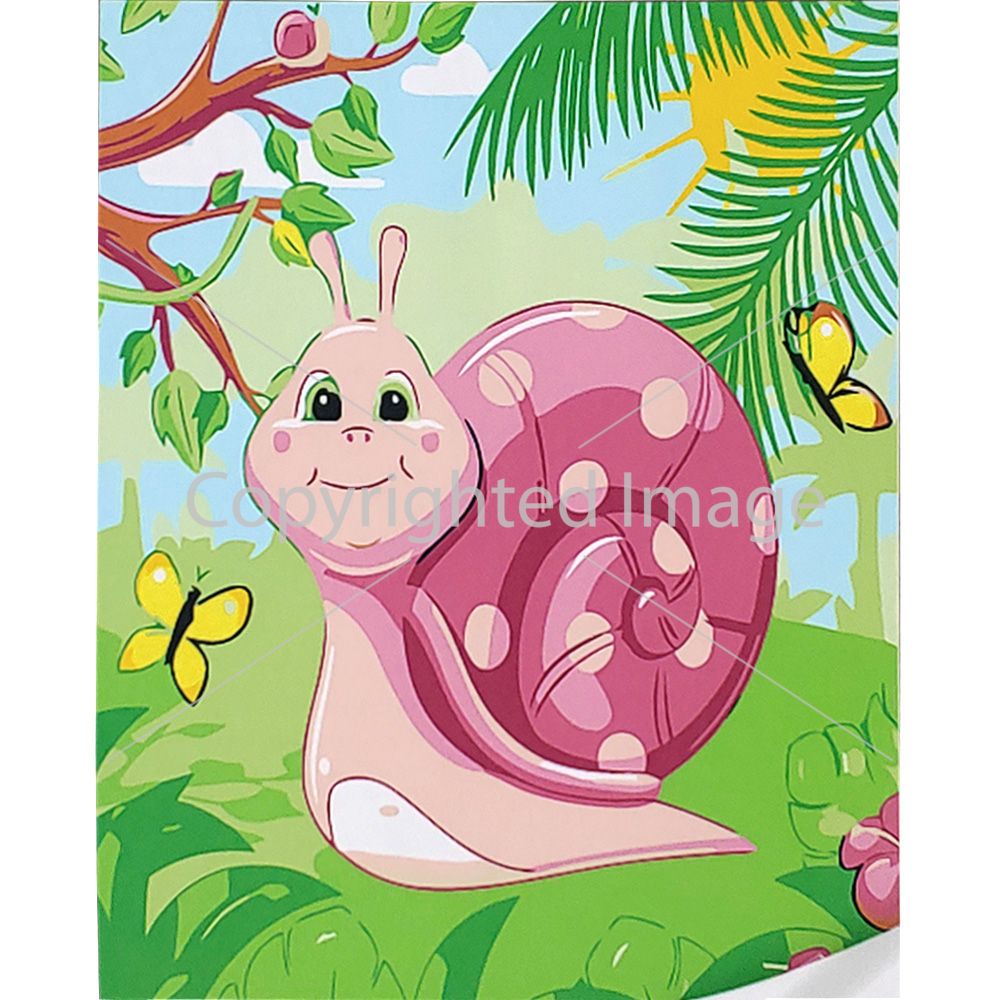 Картина за номерами Strateg ПРЕМІУМ Равлик з метеликами з лаком та з рівнем розміром 30х30 см (ES218)