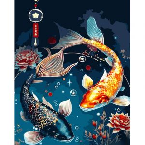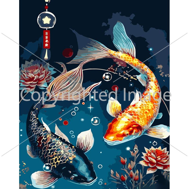 Картина за номерами Strateg ПРЕМІУМ Риби-символи з лаком та з рівнем розміром 40х50 см (GS1421)