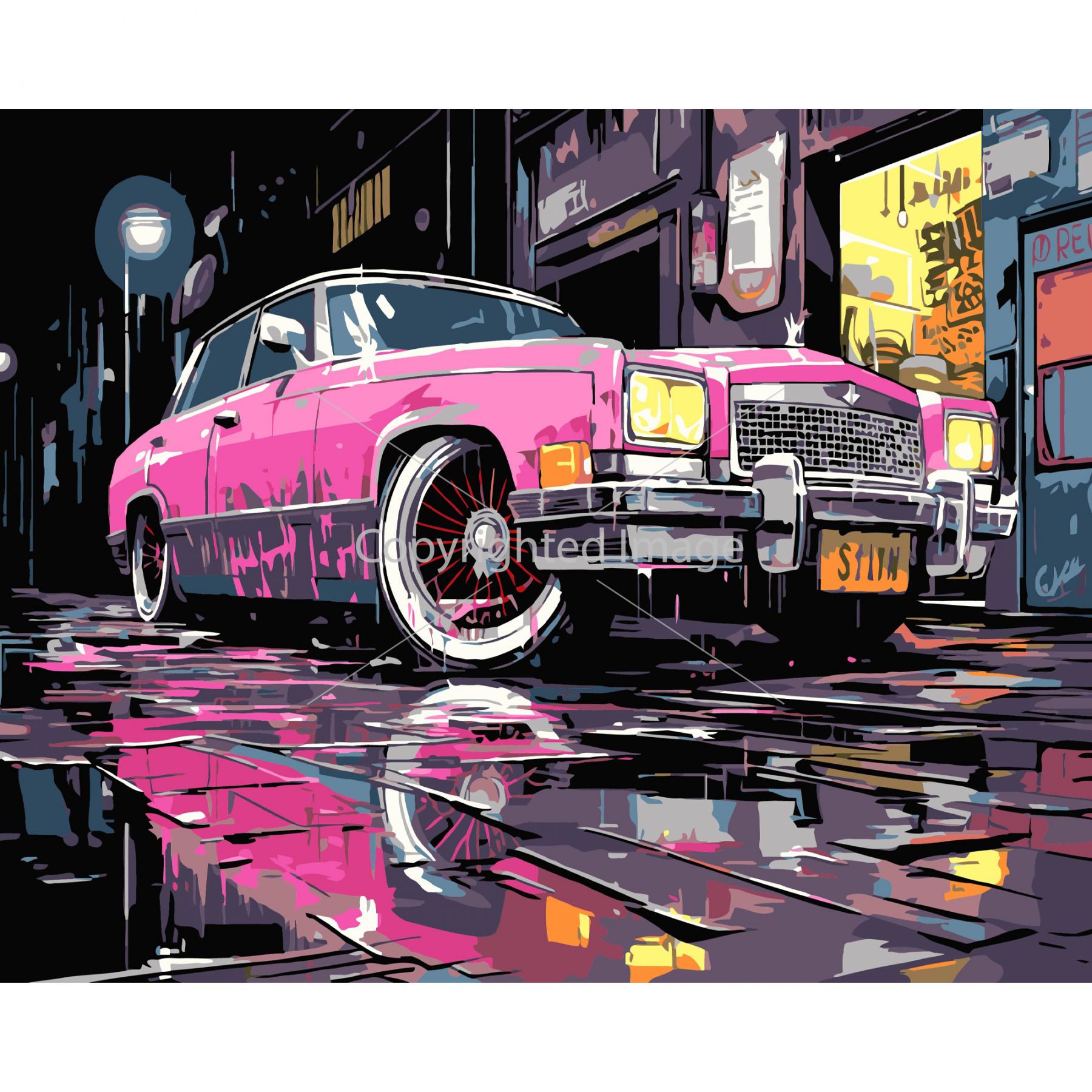 Картина за номерами Strateg ПРЕМІУМ Рожева машина на чорному фоні розміром 40х50 см (AH1175-17)