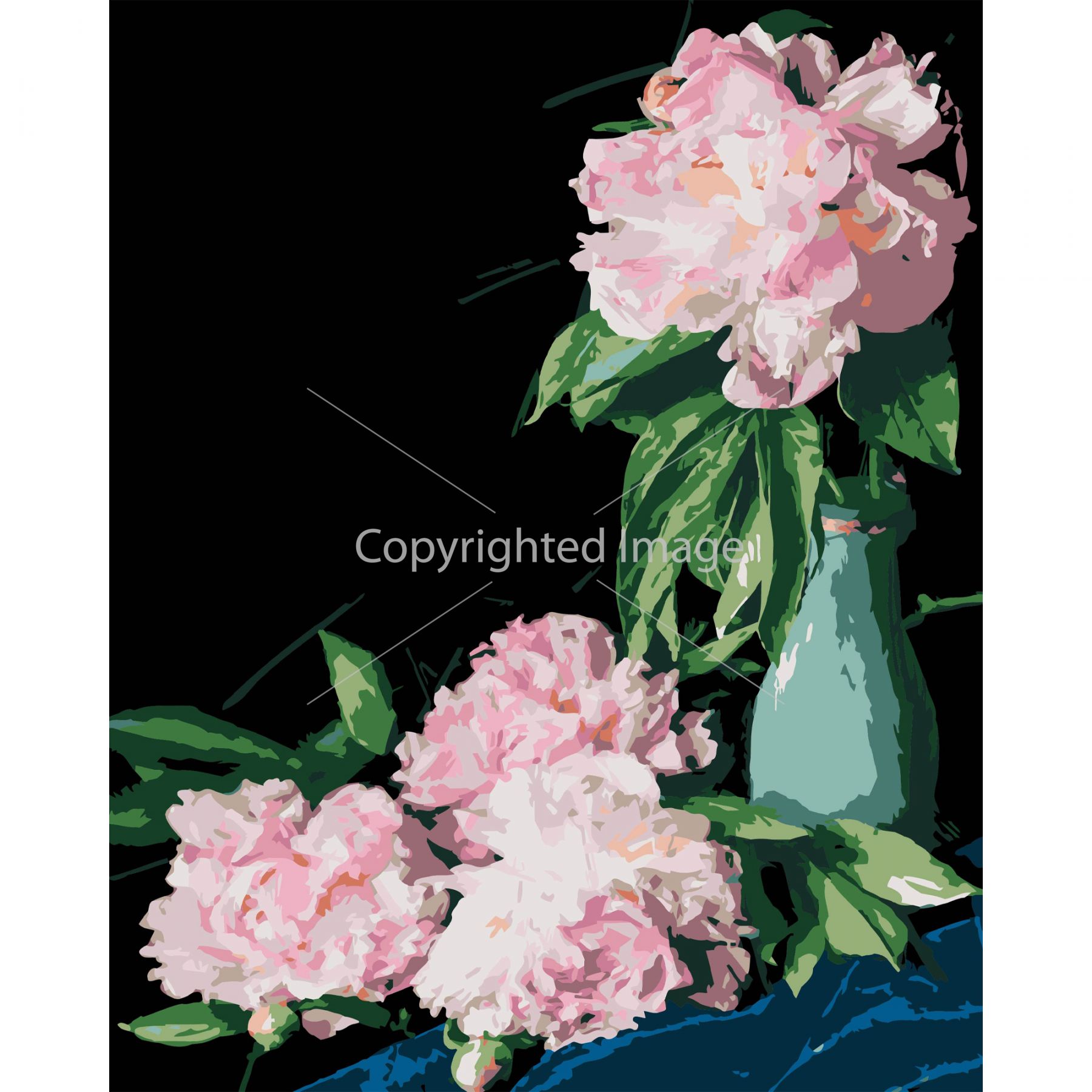 Картина за номерами Strateg ПРЕМІУМ Рожеві півонії на чорному фоні розміром 40х50 см (AH1186-18)