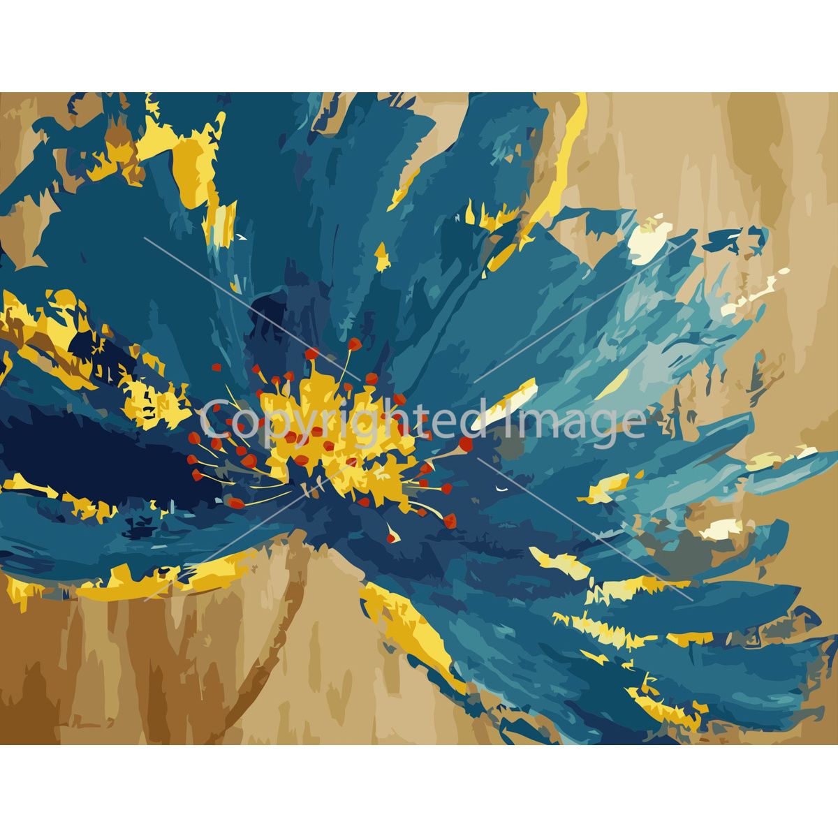 Картина за номерами Strateg ПРЕМІУМ Синя квітка з золотим обрамленням з лаком розміром 40х50 см (VA-3408)