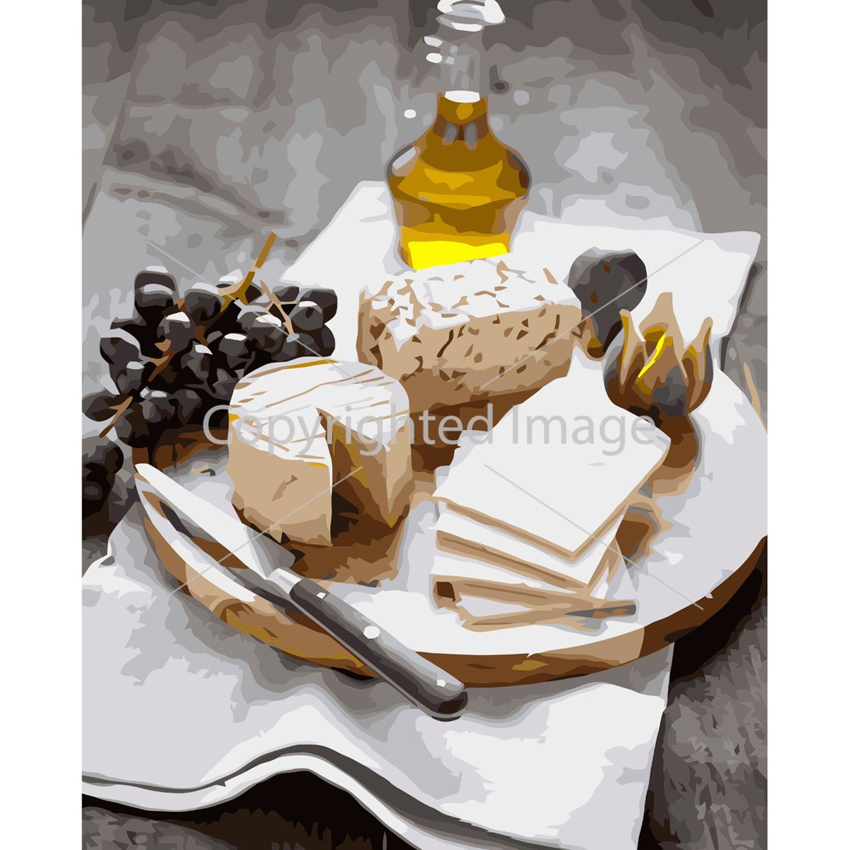 Картина за номерами Strateg ПРЕМІУМ Сирна нарізка з лаком розміром 40х50 см VA-3677