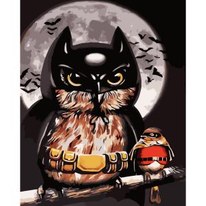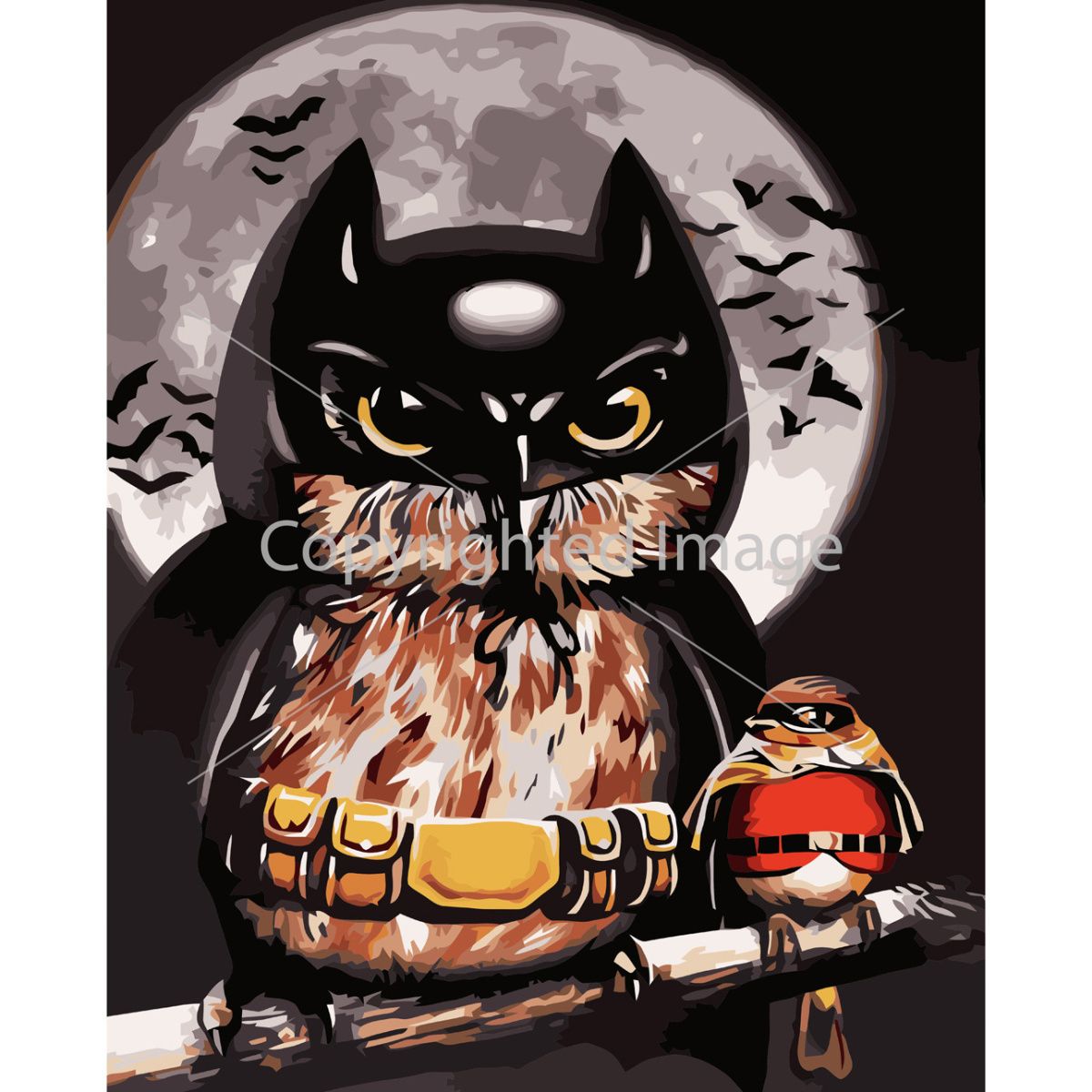 Картина за номерами Strateg ПРЕМІУМ Сова-бетмен з лаком розміром 40х50 см VA-3689