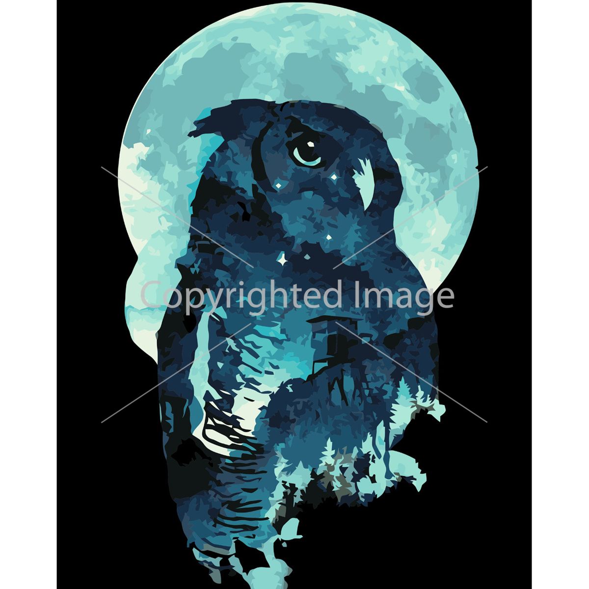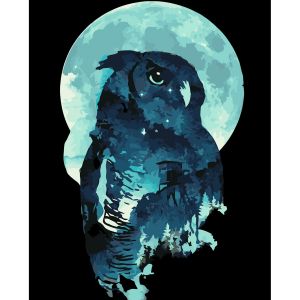 Картина за номерами Strateg ПРЕМІУМ Сова на фоні місяця з лаком розміром 40х50 см VA-3603