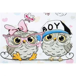 Картина за номерами Strateg ПРЕМІУМ Совушки хлопчик та дівчинка з лаком розміром 30х40 см (SS6666)