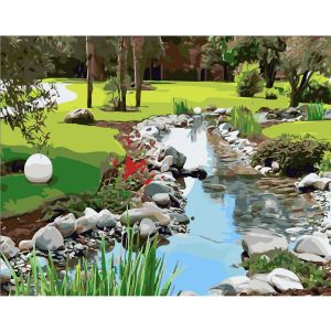 Картина за номерами Strateg ПРЕМІУМ Струмочок з лаком розміром 40х50 см SY6223